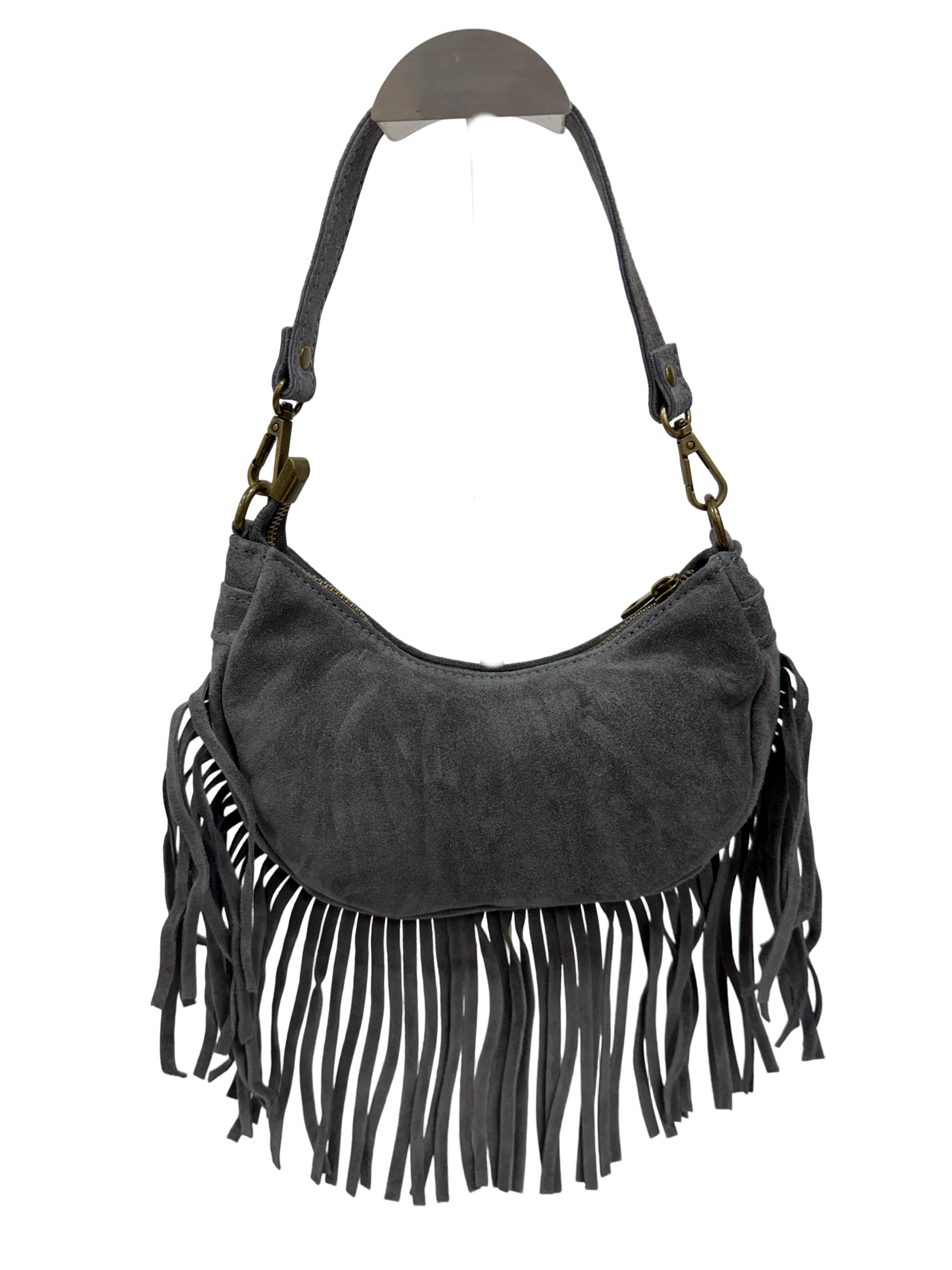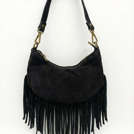Suede bag with fringes